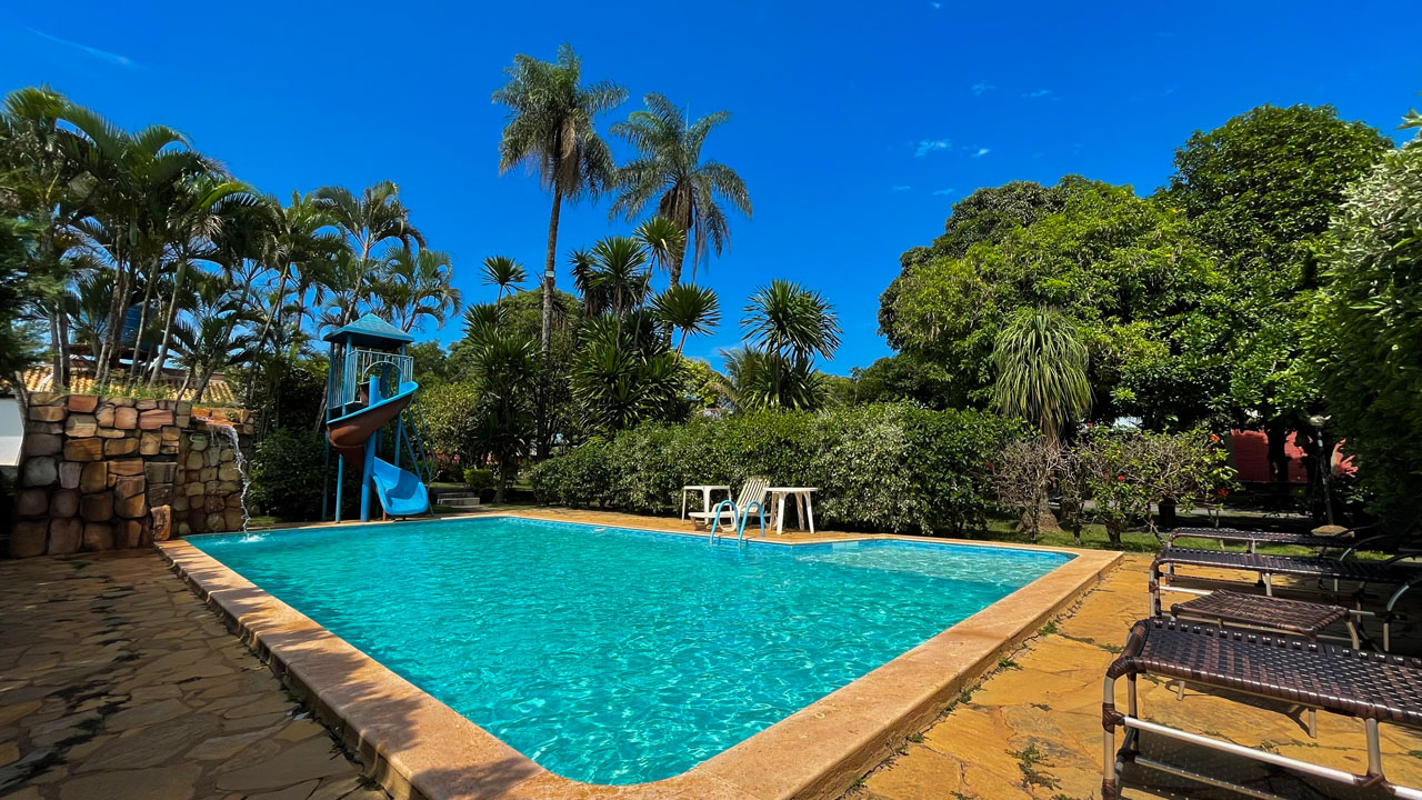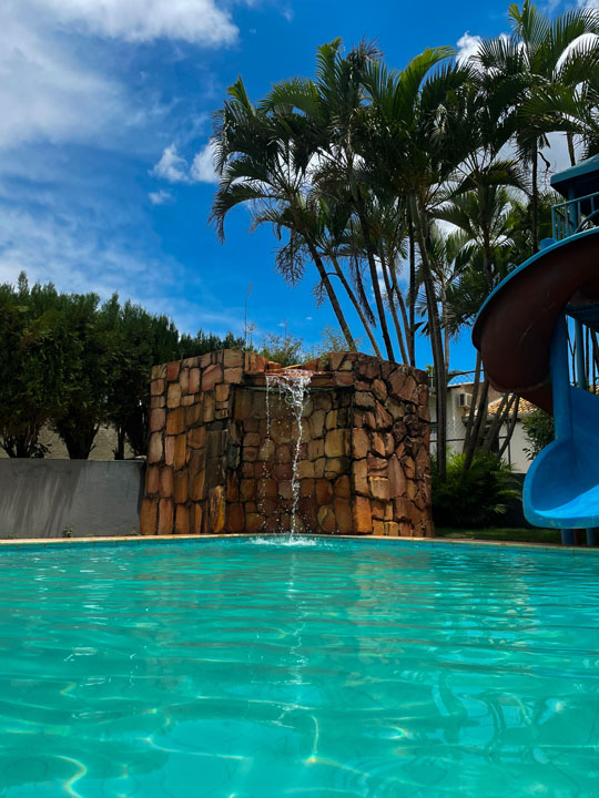 Ambientes equipados com piscina, academia, quadra para esportes, e refeitório.